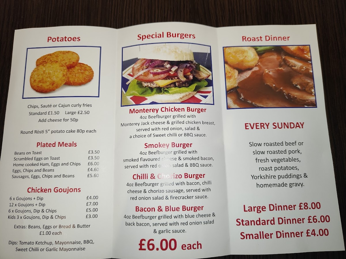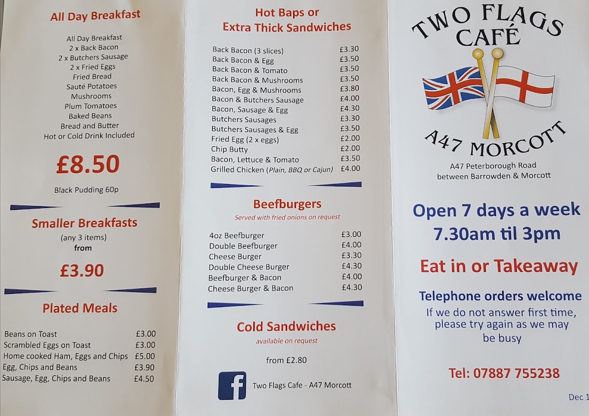 At the heart of Rutland, Two Flags Cafe invites diners to experience a delightful fusion of comfort and flavor. Renowned for its hearty breakfast options, the menu features enticing hot baps and generously thick sandwiches, with highlights like the Ack Bacon & Egg (£5.90) and the Butcher's Sausages & Egg (£5.90). Beyond breakfast, their succulent Sunday roasts are a highlight, promising tender beef and rich gravy that earn rave reviews from patrons.