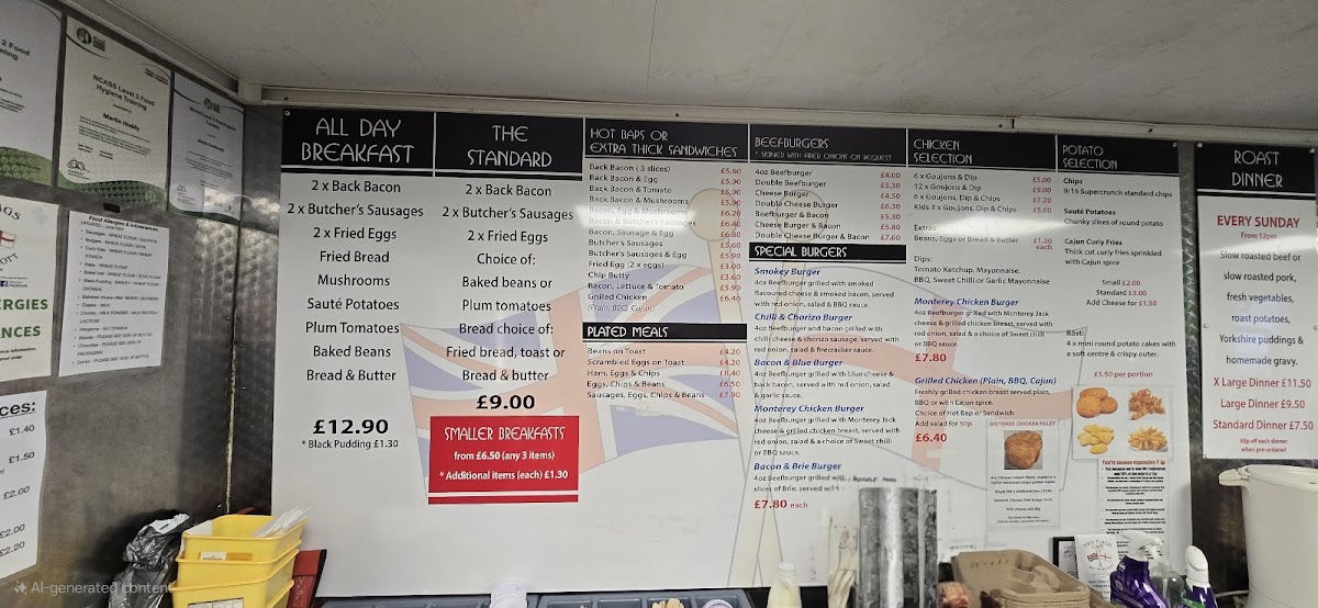 The cafe’s friendly atmosphere is complemented by excellent service, making it a favorite stop for truckers, bikers, and food lovers alike. Whether you opt for the satisfying chicken goujons or the indulgent chip butty (£3.60), each dish is crafted with care and quality ingredients. With free drink refills and a commitment to value, Two Flags Cafe emerges as a must-visit destination for those seeking a memorable culinary experience in the picturesque countryside.